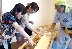 台鉋で仕上げた表面のなめらかさに声をあげておられたり、台鉋削りをはじめ、普段あまり見ることができないヤリガンナの削り体験、丸柱の鉋削り体験、海外の台鉋削りなど体験など、道具使いの楽しさや難しさ、そして堂宮大工の技が良くわかると大変好評でした。